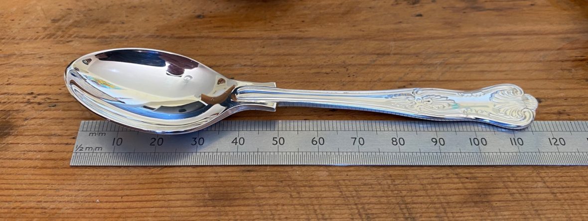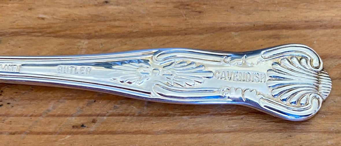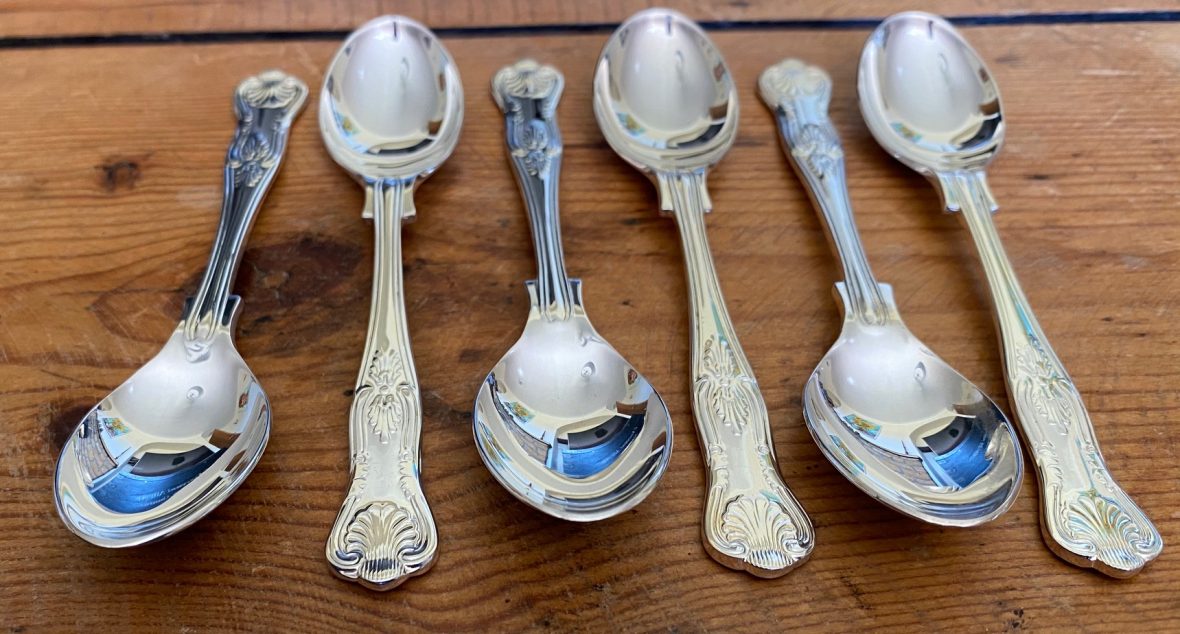 Very high quality A1 Sheffield plate spoons by Butler Cavendish in Kings Pattern.