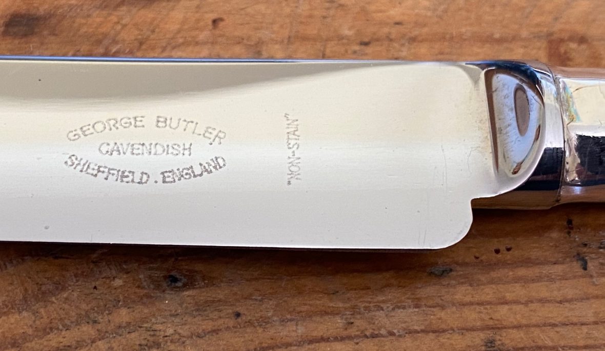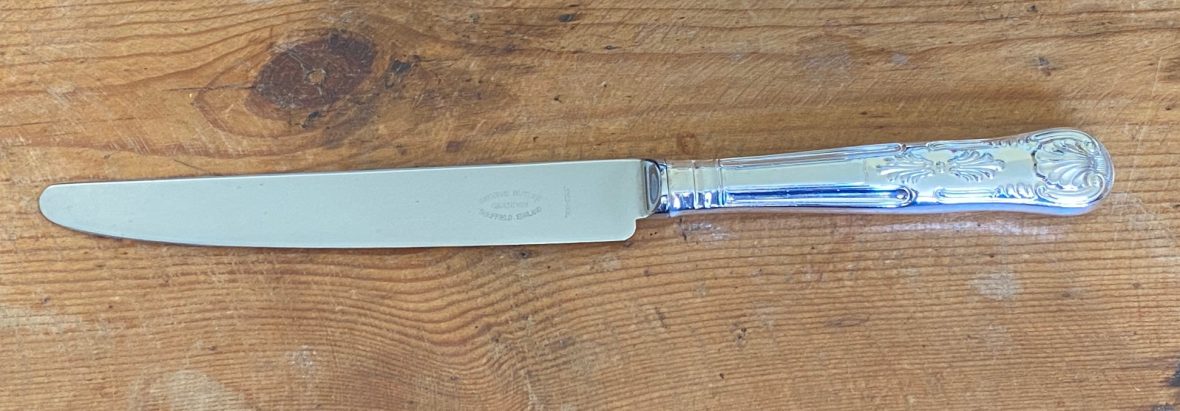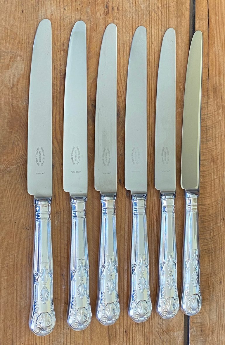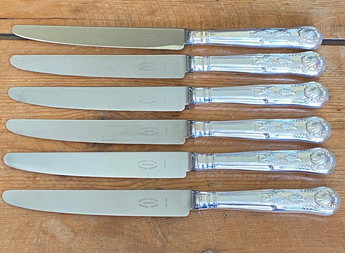 Very high quality A1 Sheffield plate knives by Butler Cavendish in Kings Pattern, with stainless steel blades.